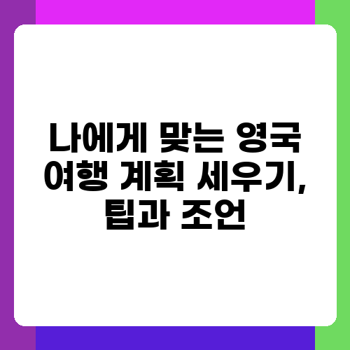 영국 여행 계획을 세울 때는, 가고 싶은 지역과 즐기고 싶은 활동을 먼저 생각해보세요. 런던을 중심으로 관광 명소를 둘러볼지, 아니면 영국 시골 지역을 중심으로 여행할지 결정하는 것이 중요합니다. 그리고 계절별 날씨를 고려해서 여행 일정을 조정하는 것도 잊지 마세요. 숙소와 항공권은 미리 예약하는 것이 좋습니다. 특히 여름 성수기에는 더욱 그렇습니다. 여행 전에 영국에 대한 기본적인 정보를 알아두면 여행이 더욱 즐거워질 거예요. 예를 들어, 교통편 이용 방법이나 영국 문화에 대한 이해도를 높이는 것도 도움이 된답니다.