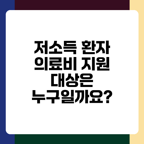 저소득층이라 의료비 걱정이 많으시죠? 혹시 몰라서 지원 혜택을 받지 못하고 계신 건 아닌가요? 저는 오늘 여러분께 저소득 환자 의료비 지원제도에 대해 자세하게 알려드리고 싶어요. 복잡한 절차 때문에 망설이시는 분들도 계실 텐데, 차근차근 설명해 드릴 테니 어렵지 않게 이해하실 수 있을 거예요. 함께 알아보고 꼭 혜택을 받으시길 바랍니다.