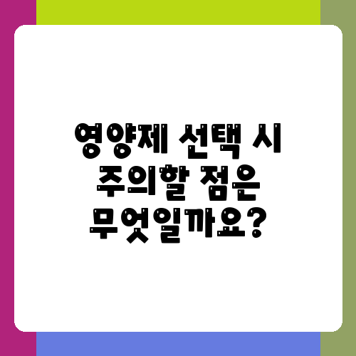 영양제를 선택할 때는 제품의 성분과 함량을 꼼꼼히 확인해야 합니다. 특히 자신에게 알레르기 반응을 일으키는 성분이 있는지, 다른 약과의 상호작용은 없는지 확인하는 것이 중요합니다. 또한, 제품의 품질과 안전성을 보장하는 인증 마크를 확인하고, 믿을 수 있는 제조사의 제품을 선택하는 것이 좋습니다. 그리고 과다 섭취는 오히려 건강에 해로울 수 있으므로, 권장량을 준수하는 것이 매우 중요합니다. 무엇보다 중요한 것은, 영양제는 건강한 식습관과 규칙적인 운동을 대체할 수 없다는 점입니다.