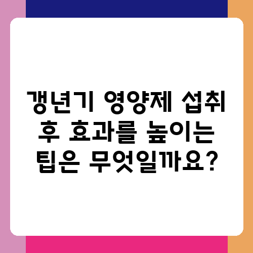 갱년기 영양제 섭취 후 효과를 높이는 팁은 무엇일까요?