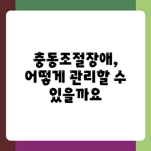 결론적으로 충동조절장애는 혼자 극복하기 어려운 질환이지만, 전문가의 도움과 꾸준한 노력을 통해 충분히 관리하고 삶의 질을 향상시킬 수 있습니다. 이 글이 충동조절장애에 대한 이해를 높이고, 더 나아가 관리 전략을 세우는 데 도움이 되었기를 바랍니다. 주변에 어려움을 겪는 분이 있다면 따뜻한 관심과 지지 부탁드립니다. 그리고, 무엇보다 자신을 먼저 돌보고 사랑하는 것을 잊지 마세요. 혹시 더 궁금한 점이나 도움이 필요하다면 언제든지 전문가의 도움을 받으시기 바랍니다.