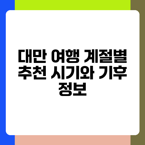 대만 여행을 계획 중이시라면, 언제 떠나는 것이 가장 좋을지 고민이 많으시죠? 대만은 사계절이 뚜렷하지 않고, 지역별로 기후 차이도 있어서 여행 시기를 선택하는 것이 중요해요. 저는 대만을 여러 번 다녀온 경험을 바탕으로, 계절별 날씨와 여행하기 좋은 시기를 자세히 알려드릴게요. 즐거운 대만 여행을 위한 완벽한 가이드가 되어드릴 것을 약속드립니다!