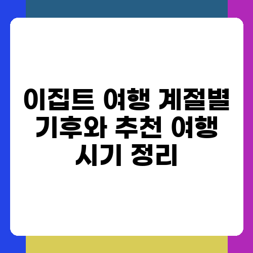이집트, 신비로운 피라미드와 웅장한 스핑크스, 그리고 나일강의 아름다움을 꿈꾸며 여행을 계획하고 계신가요? 하지만 이집트는 사막 기후라 계절에 따라 기온 차이가 매우 크답니다. 때문에 여행 시기를 잘 선택하는 것이 정말 중요해요. 이 글에서는 이집트 여행의 계절별 기후와 추천 여행 시기를 자세히 알려드릴게요. 잊지 못할 이집트 여행을 위해 함께 알아보도록 하죠!