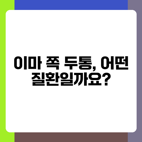 이마 쪽에 두통이 있다면, 편두통이나 긴장성 두통을 의심해볼 수 있습니다. 편두통은 보통 한쪽 이마 부위에 욱신거리는 통증이 나타나며, 심할 경우 구역질이나 구토를 동반하기도 합니다. 빛이나 소리에 민감해지기도 하고요. 반면 긴장성 두통은 이마 전체가 조이는 듯한 압박감을 느끼는 것이 특징입니다. 이 경우, 스트레스나 수면 부족이 원인일 가능성이 높습니다. 하지만 이마 두통은 부비동염이나 안와염과 같은 질환으로 인해 발생할 수도 있기 때문에, 만약 이마 통증과 함께 콧물, 코막힘, 눈물, 눈 통증 등이 동반된다면 병원에 방문하여 정확한 진단을 받아보는 것이 좋습니다. 특히, 두통과 함께 고열이나 의식저하가 동반되는 경우 응급실 방문이 필요합니다. 저도 예전에 이마가 엄청 아팠는데, 알고 보니 부비동염이었더라고요. 심하지 않은 경우에는 약국에서 파는 약으로도 어느 정도 효과를 볼 수 있지만, 증상이 심하거나 오래 지속된다면 반드시 전문의의 진료를 받으셔야 합니다.