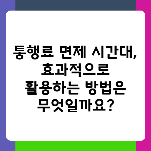 통행료 면제 시간대, 효과적으로 활용하는 방법은 무엇일까요?