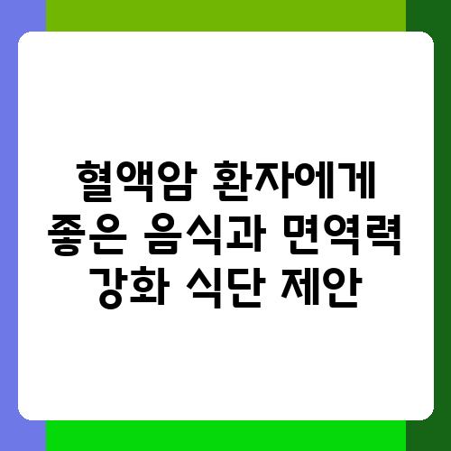 혈액암 투병 중인 분들과 가족분들은 힘든 시간을 보내고 계실 거예요. 치료 과정은 쉽지 않고, 면역력 저하로 인한 걱정도 많으실 겁니다. 하지만 건강한 식단은 면역력을 높이고 삶의 질을 개선하는 데 큰 도움이 된다는 사실을 기억하세요. 이 글에서는 혈액암 환자분들의 면역력을 강화하는 데 도움이 되는 식단 정보를 알려드리려고 합니다. 함께 건강한 식생활을 통해 힘든 시간을 잘 헤쳐나가 보도록 해요.