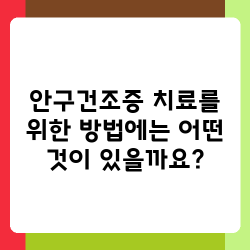 안구건조증 치료를 위한 방법에는 어떤 것이 있을까요?