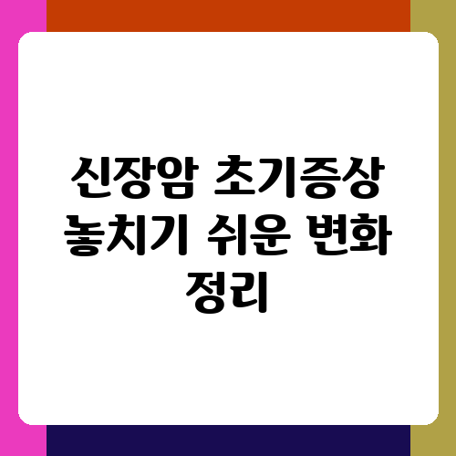 건강검진을 받았는데, 혹시 신장암이라는 말을 듣게 될까 봐 걱정이시라고요? 아니면 몸에 이상 증상이 느껴지는데, 혹시 신장암일까 봐 불안하신가요? 신장암은 조기 발견이 중요한 질병입니다. 하지만 초기에는 특별한 증상이 없거나 다른 질병과 비슷한 증상을 보여 놓치기 쉽다는 점이 문제죠. 그래서 오늘은 신장암 초기 증상 중 쉽게 간과할 수 있는 변화들을 자세히 알아보고, 조기에 발견하여 건강을 지킬 수 있도록 도와드리겠습니다. 건강을 위해서 꼼꼼히 살펴보세요!