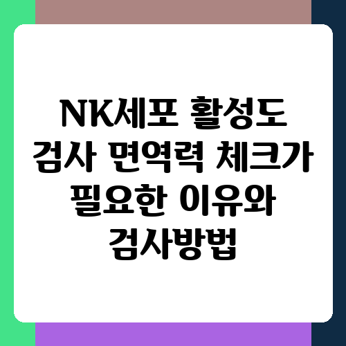 면역력이 걱정이시라면, 건강검진만으로는 부족하다고 느끼신 적 있으세요? 피곤함이 쉽게 가시지 않고, 감기에 자주 걸리거나 몸이 쉽게 지치는 증상 때문에 면역력 저하를 의심하시는 분들이 많아졌어요. 단순히 건강검진 수치만으로는 알 수 없는 면역력의 핵심, 바로 NK세포 활성도에 대해 알아보고, 왜 검사가 필요한지, 어떤 방법으로 검사하는지 자세히 알려드릴게요. 건강한 삶을 위한 첫걸음을 함께 시작해 보아요.