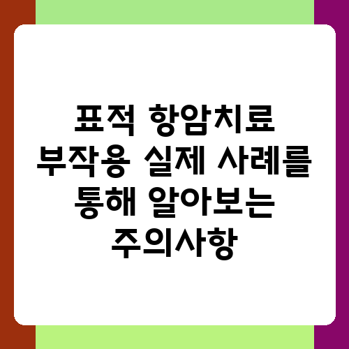 표적 항암치료는 암세포만을 공격하는 약물을 사용하여 암을 치료하는 방법으로, 기존 항암치료보다 부작용이 적다고 알려져 있습니다. 하지만, 표적 항암제 역시 부작용이 없는 것은 아니며, 개인마다 다르게 나타날 수 있습니다. 이 글에서는 실제 사례를 통해 표적 항암치료의 부작용과 주의사항을 알아보고, 부작용 발생 시 어떻게 대처해야 하는지 알려드리겠습니다. 함께 알아보는 시간을 가져보도록 하죠.
