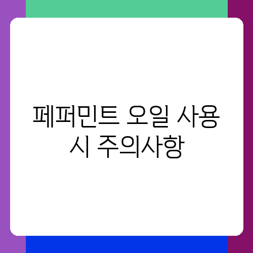 페퍼민트 오일은 효능이 다양하지만 사용 시 주의사항도 있습니다. 임신 중이거나 수유 중인 여성, 어린아이, 피부가 민감한 분들은 사용 전에 반드시 의사와 상담하는 것이 좋습니다. 또한, 페퍼민트 오일을 눈이나 귀에 직접 닿지 않도록 주의해야 합니다. 만약 눈에 들어갔을 경우에는 즉시 깨끗한 물로 충분히 씻어내고, 필요하다면 의사의 진료를 받아야 합니다. 페퍼민트 오일을 사용할 때는 항상 희석해서 사용하고, 피부에 발랐을 때 가려움증이나 발진 등의 알레르기 반응이 나타나면 즉시 사용을 중단하고 의사와 상담해야 합니다. 그리고 페퍼민트 오일은 내복용으로 사용하는 것을 권장하지 않습니다. 과다 섭취 시 위장 장애 등의 부작용이 발생할 수 있으므로, 외부 사용에만 국한하는 것이 좋습니다. 페퍼민트 오일의 효능을 제대로 누리면서 안전하게 사용하는 방법을 숙지하여 건강하고 행복한 생활을 영위하세요.