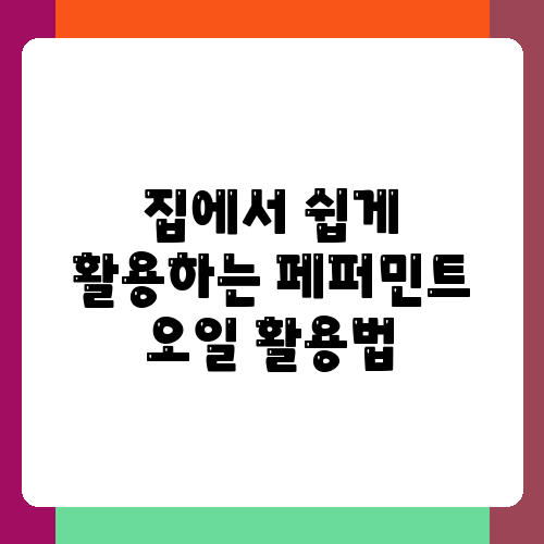 페퍼민트 오일의 상쾌함을 일상에 더해보세요! 오늘 알려드린 정보가 여러분의 건강한 생활에 도움이 되기를 바랍니다. 페퍼민트 오일을 사용하면서 궁금한 점이나 경험이 있다면 댓글로 공유해주세요! 함께 건강 정보를 나누고 싶습니다.
