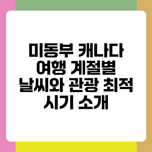캐나다 동부, 특히 대서양 연안 지역은 아름다운 자연과 매력적인 도시들이 어우러진 곳이죠. 하지만 여행을 계획할 때 가장 중요한 것은 바로 날씨! 계절별로 다른 매력을 가진 미동부 캐나다는 어떤 계절에 방문하는 것이 가장 좋을까요? 이 글에서는 미동부 캐나다의 계절별 날씨와 여행하기 가장 좋은 시기를 자세히 알려드리도록 하겠습니다. 여행 계획에 도움이 되는 정보들을 꼼꼼하게 준비했으니, 함께 떠나볼까요?