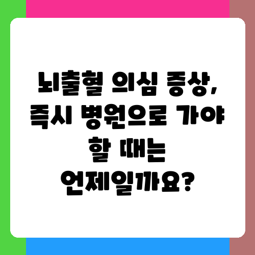 뇌출혈 의심 증상, 즉시 병원으로 가야 할 때는 언제일까요?