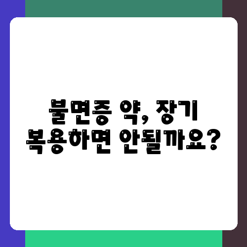 수면제를 포함한 불면증 약물의 장기 복용은 권장하지 않습니다. 장기 복용 시 내성이 생겨 약효가 감소하고, 더 많은 양을 복용해야 하는 상황이 발생할 수 있습니다. 또한, 중독의 위험성도 높아지고, 금단 증상이 나타날 수도 있어요. 장기간 복용이 불가피한 경우, 의사와 꾸준히 상담하며 복용량을 조절하고, 다른 치료법을 병행하는 것이 좋습니다. 약물에 의존하기보다는, 수면 위생 개선, 인지행동치료 등 비약물적인 치료법을 병행하여 불면증을 극복하는 것이 더욱 바람직합니다. 단순히 약물에만 의존하기 보다는, 규칙적인 수면 습관을 들이려는 노력과 스트레스 관리, 운동 등 생활 습관 개선을 통해 불면증을 관리하는 것이 중요합니다. 꾸준히 노력하면 불면증에서 벗어나 건강한 수면을 취할 수 있을 거예요.