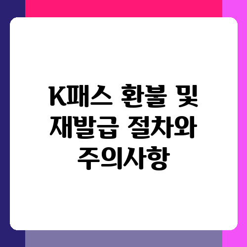 만약 K패스를 구매했는데, 사용하지 않거나 환불이 필요한 상황이 발생할 수도 있겠죠? 이럴 때는 K패스 구매처 또는 발급처에 문의해서 환불 절차에 대해 자세히 알아보는 것이 좋아요. 환불은 패스 종류나 구매 시점에 따라 조건이 다를 수 있으니, 미리 확인하는 것이 중요하답니다. 저도 한번 환불받은 적이 있는데, 환불받기 전에 미리 조건을 확인했던 덕분에 어려움 없이 환불을 받을 수 있었어요. 또, 패스 분실이나 파손 시에는 재발급을 신청해야 하는데, 이때 필요한 서류와 절차를 미리 알아두면 시간을 절약할 수 있답니다. K패스 재발급 시에는 수수료가 발생할 수 있으므로, 이 부분도 확인하시는 게 좋겠죠? 이런 것들 미리 알아두면 갑작스러운 상황에 당황하지 않고 대처할 수 있어요.