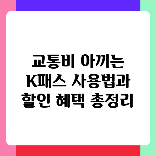 교통비 때문에 고민이 많으시죠? 매달 버스비, 지하철비, 택시비 등 교통비만 생각해도 벌써부터 걱정이 앞서네요. 하지만 K패스를 잘 활용하면 이러한 걱정을 덜 수 있다는 사실! 저는 K패스를 이용하면서 교통비를 꽤나 절약했거든요. 이 글에서는 K패스 사용법과 할인 혜택을 꼼꼼하게 정리해서 여러분께 알려드리고자 합니다. 알뜰살림의 핵심이 바로 여기에 있다고 생각해요. 함께 알아보고 교통비 부담을 줄여봐요!