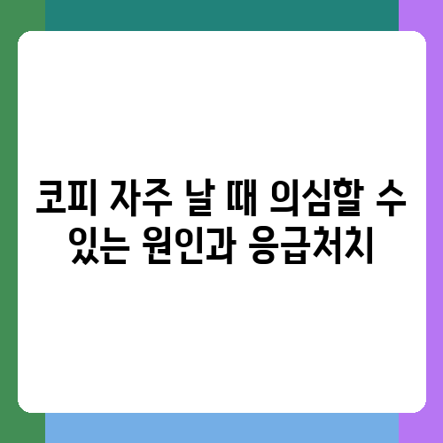 코피가 자주 난다면 걱정이 많으시죠? 저도 몇 년 전 갑자기 코피가 자주 나서 정말 당황했던 기억이 나요. 피가 멈추지 않아 응급실에 간 적도 있고요. 그때 의사선생님께 자세히 설명을 듣고, 코피의 원인과 대처법에 대해 제대로 알게 되었답니다. 오늘은 제가 직접 경험하고 배우게 된 코피의 원인과 응급처치 방법을 여러분과 함께 나누고자 해요. 코피가 자주 나는 분들에게 도움이 되길 바라면서 시작해볼게요!