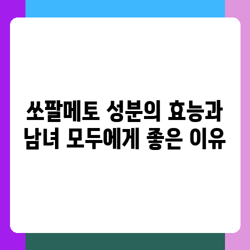 쏘팔메토는 최근 건강 기능성 식품으로 주목받고 있는 성분입니다. 하지만 정확히 어떤 효능이 있고, 남녀 모두에게 왜 좋은지 궁금하신 분들이 많을 거예요. 저도 처음에는 그랬거든요. 이 글에서는 쏘팔메토의 효능과 남녀 모두에게 도움이 되는 이유를 자세히 알아보고, 여러분의 건강 관리에 도움이 되는 정보를 제공하고자 합니다. 함께 알아볼까요?