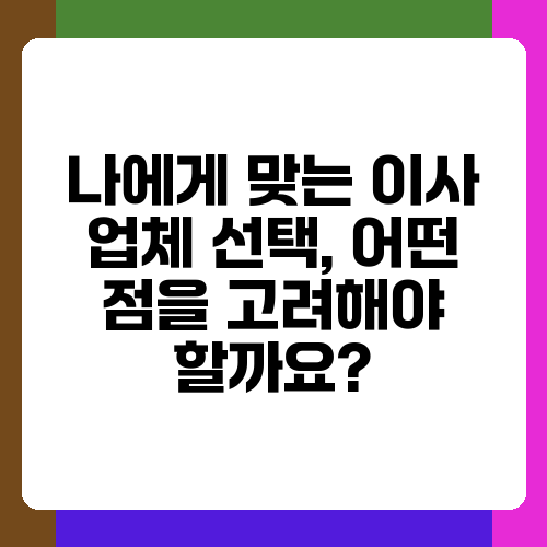 나에게 맞는 이사 업체 선택, 어떤 점을 고려해야 할까요?