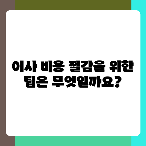이사 비용 절감을 위한 팁은 무엇일까요?