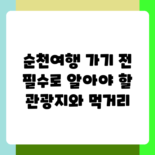 순천 여행을 계획하고 계신가요? 아름다운 자연과 매력적인 문화유산이 가득한 순천은 잊지 못할 추억을 만들기에 더할 나위 없이 좋은 곳이에요. 하지만 여행 전에 어떤 곳을 방문하고 무엇을 먹어야 할지 고민이신 분들을 위해 순천 여행의 핵심을 담은 완벽 가이드를 준비했습니다. 꼼꼼하게 살펴보시고 즐거운 순천 여행 계획 세우세요!