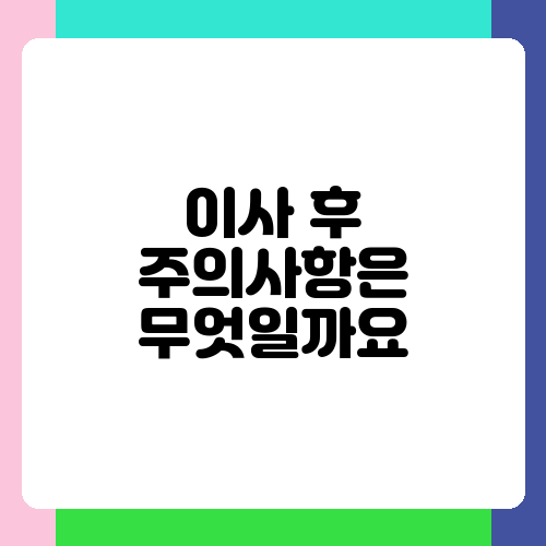 이사 후에는 이삿짐센터와 계약 내용을 다시 한번 확인하고, 잔금 지급을 하기 전에 이삿짐에 문제가 없는지 꼼꼼하게 확인해야 합니다. 파손된 물건이 있다면 이삿짐센터에 즉시 연락하여 처리해야 합니다. 또한, 이사 후 주소 변경 등 행정 절차도 잊지 말고 처리해야 합니다. 이사 후에는 여러 가지로 정신없지만, 꼼꼼하게 확인하고 행정 절차를 밟는 것을 잊지 않도록 하세요.