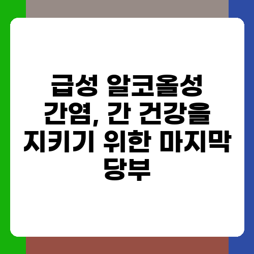 급성 알코올성 간염은 과도한 알코올 섭취로 인해 간에 염증이 발생하는 질환입니다. 단기간의 폭음보다는 장기간에 걸친 과음으로 인해 주로 발생하는데요. 간세포가 손상되면서 간 기능이 저하되고, 심한 경우 생명을 위협할 수도 있습니다. 증상은 개인마다 다르게 나타나지만, 대부분 갑작스럽게 나타나는 경우가 많아 주의가 필요해요. 간 기능 저하로 인해 황달, 복통, 피로감 등이 나타날 수 있고, 심하면 의식 장애까지 올 수 있답니다. 급성 알코올성 간염은 조기에 발견하여 치료하면 회복 가능성이 높지만, 방치할 경우 만성 간 질환으로 이어지거나 심각한 합병증을 유발할 수 있으므로 초기 증상에 주의를 기울여야 합니다. 평소 건강검진을 통해 간 기능 수치를 정기적으로 체크하는 것도 좋은 예방법 중 하나라고 생각합니다.
