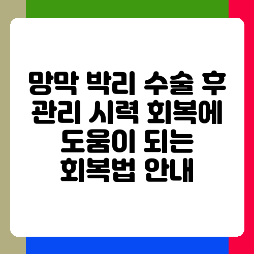 망막 박리 수술을 받으셨나요? 수술 후 시력 회복은 물론, 일상생활로의 빠른 복귀를 원하시는 마음 간절히 이해합니다. 수술 후 관리가 얼마나 중요한지 아시죠? 잘못된 관리로 인해 시력 회복이 더뎌지거나 심지어는 합병증까지 발생할 수 있다고 해요. 그래서 오늘은 망막 박리 수술 후 시력 회복에 도움이 되는 관리법과 주의사항을 자세히 알려드리고자 합니다. 함께 차근차근 알아보고, 건강한 눈으로 다시 일상을 즐기도록 해요!