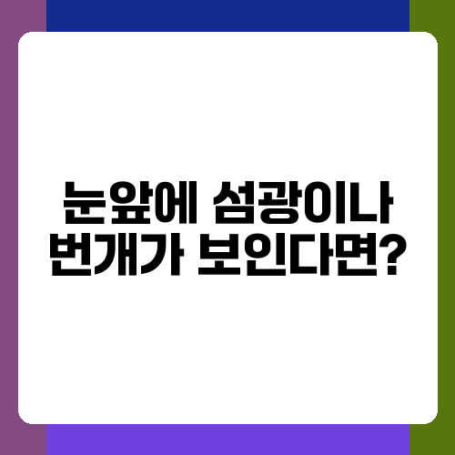 어두운 곳에서 갑자기 번개가 치는 것처럼 섬광이 보이거나, 눈앞에 밝은 빛이 번쩍이는 현상을 경험하셨다면 주의 깊게 살펴봐야 합니다. 이는 망막에 혈관이 터지거나, 망막이 찢어지는 등의 문제가 발생했을 때 나타날 수 있는 신호입니다. 이러한 섬광은 짧게 나타날 수도 있고, 지속적으로 나타날 수도 있습니다. 갑작스럽게 이런 현상을 경험했다면, 절대 가볍게 여겨서는 안 됩니다. 바로 안과 진료를 받아 망막에 이상이 없는지 정밀 검사를 받아보는 것이 중요합니다. 섬광과 함께 시야의 일부가 까맣게 가려지는 현상이 동반되는 경우가 있는데, 이는 더욱 위험한 신호일 수 있습니다. 망막 박리가 의심되는 상황이니 즉각적인 조치가 필요합니다.