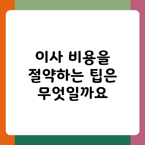 이사 비용을 절약하는 팁들을 소개해 드릴게요. 먼저, 이삿짐을 최대한 줄여보세요. 필요 없는 물건들을 미리 정리하여 짐의 양을 줄이면 이사 비용을 절감하는 데 도움이 됩니다. 중고로 팔거나 기증하는 것도 좋은 방법이죠. 그리고, 이삿날짜를 평일이나 비수기로 선택하는 것도 좋습니다. 주말이나 성수기에는 이사 수요가 많아 비용이 상승할 수 있습니다. 또한, 이사 업체와 협상을 통해 가격을 조정하는 것도 가능합니다. 견적을 받은 후, 다른 업체의 견적과 비교하여 가격을 낮춰달라고 요청할 수 있어요. 마지막으로, 포장 이사 대신 반포장 이사나 일반 이사를 고려해 보세요. 포장 이사보다 비용이 저렴하지만, 직접 포장과 정리를 해야 하므로 시간과 노력이 필요하다는 점을 고려해야 합니다.